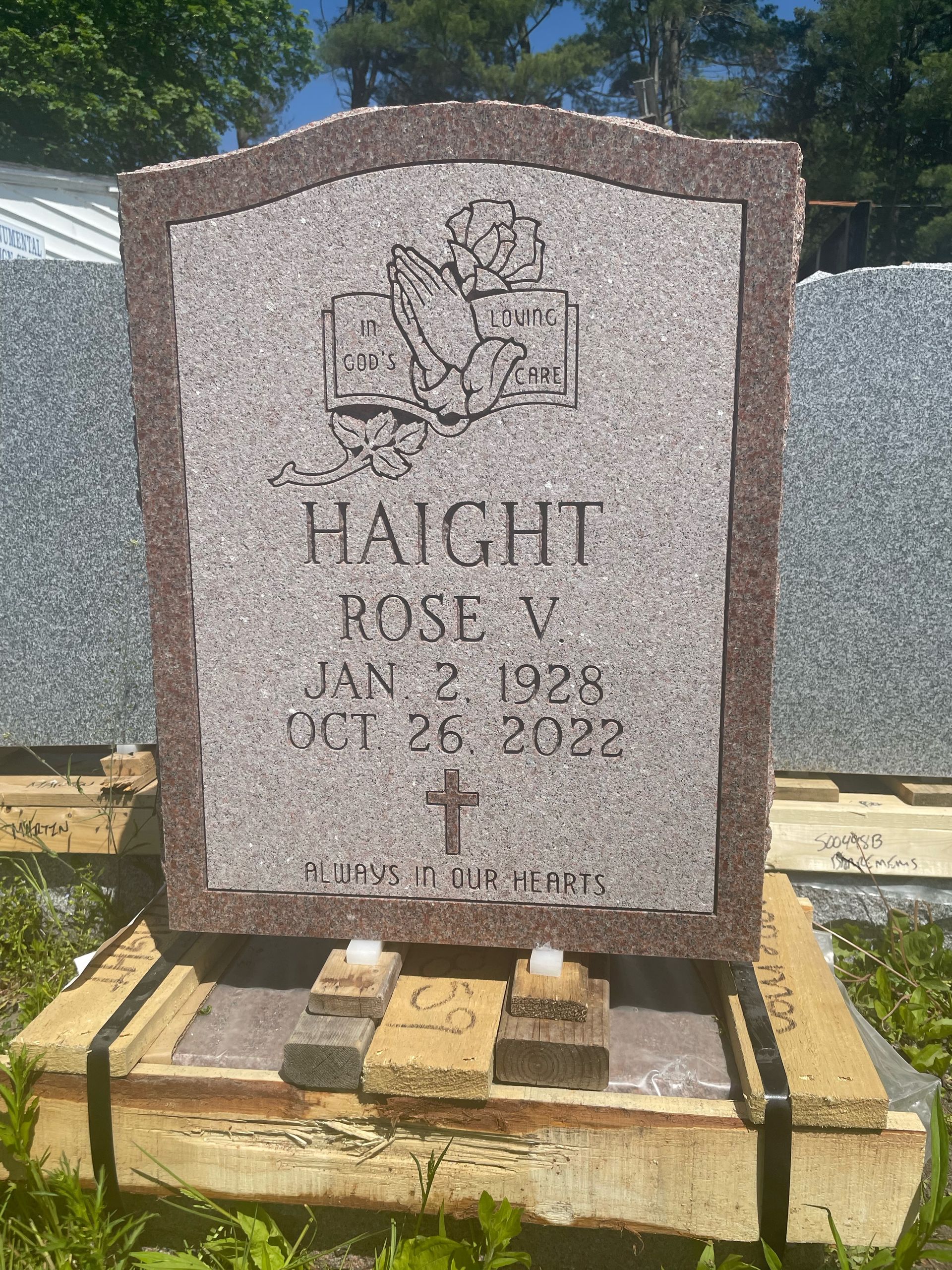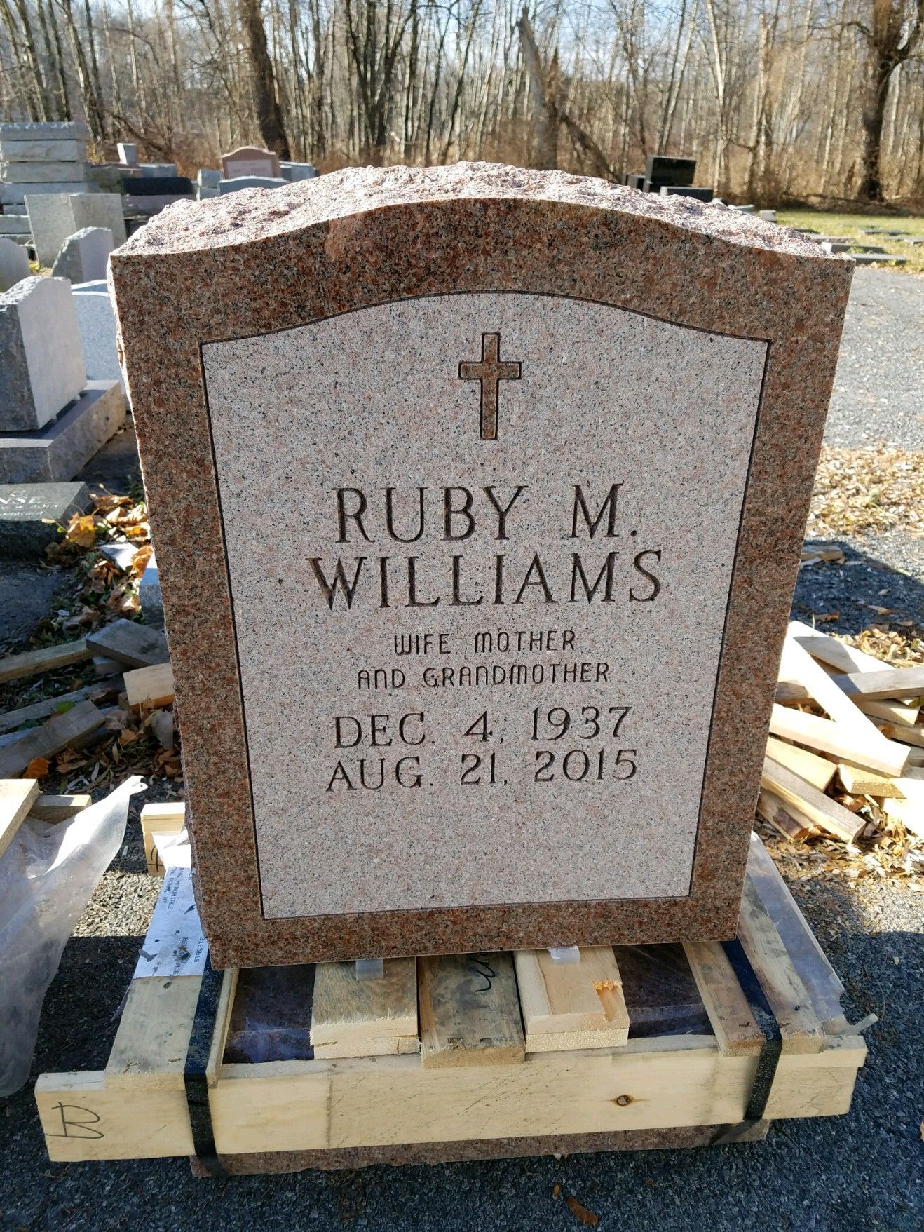I would like to thank you for the beautiful job you did on my mother's headstone. I would also like to say thank you for having it done so quickly. My parent's wedding anniversary was nearing and having her headstone there for this day is special. My mother would have loved the rose you put in the corner. Once again, thank you.
