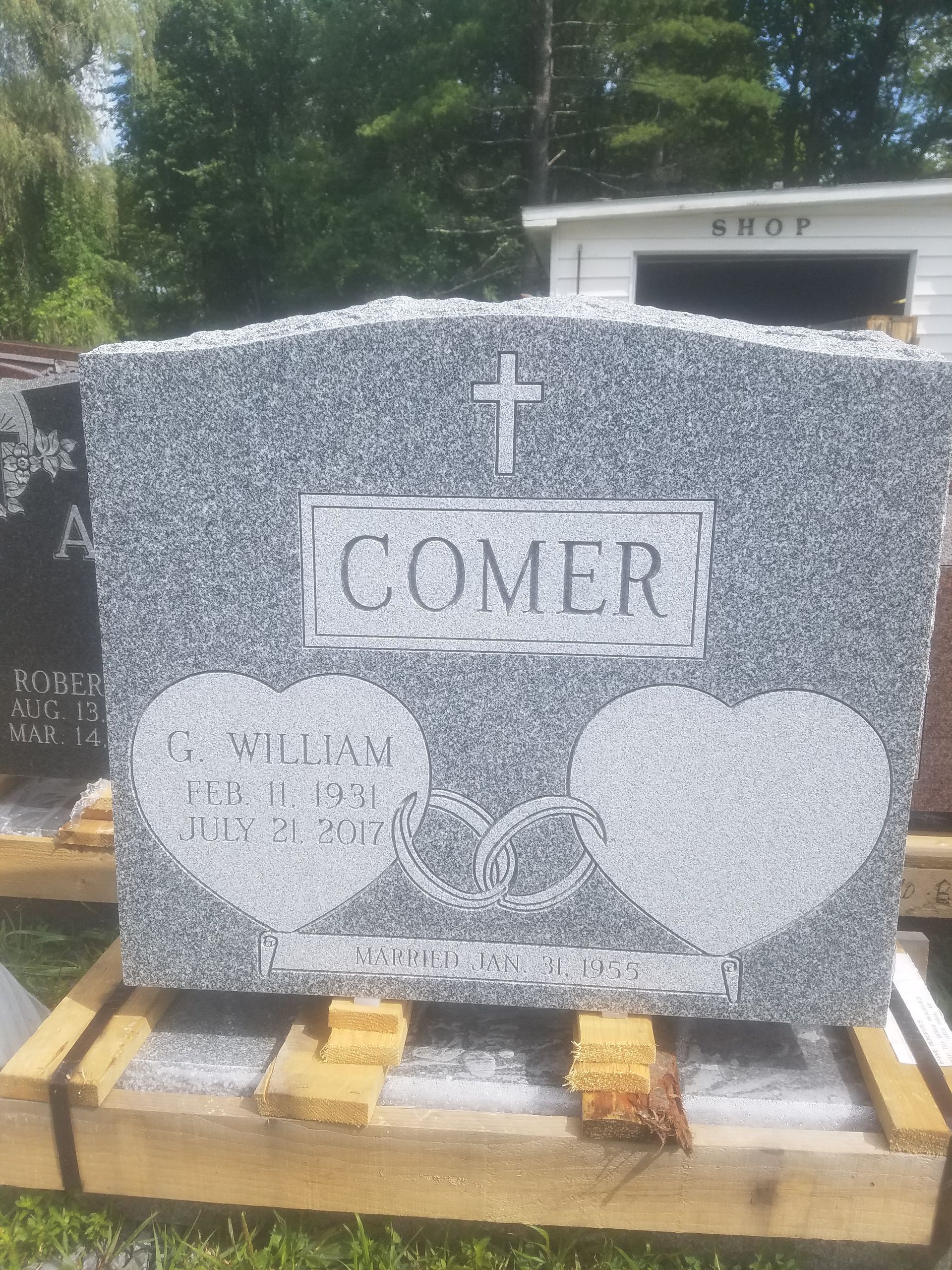 Last Saturday afternoon we had a graveside service for my husband. I want to tell you how nice the lettering on the stone looks. You do very nice work. I was surprised when you called a week ago and told me the work was all done. Thank you. I did appreciate that the lettering had been done, for my son and his wife had flown up from Georgia for the service. They were also pleased to see how attractive the lettering and stone looked. Thank you for everything.
