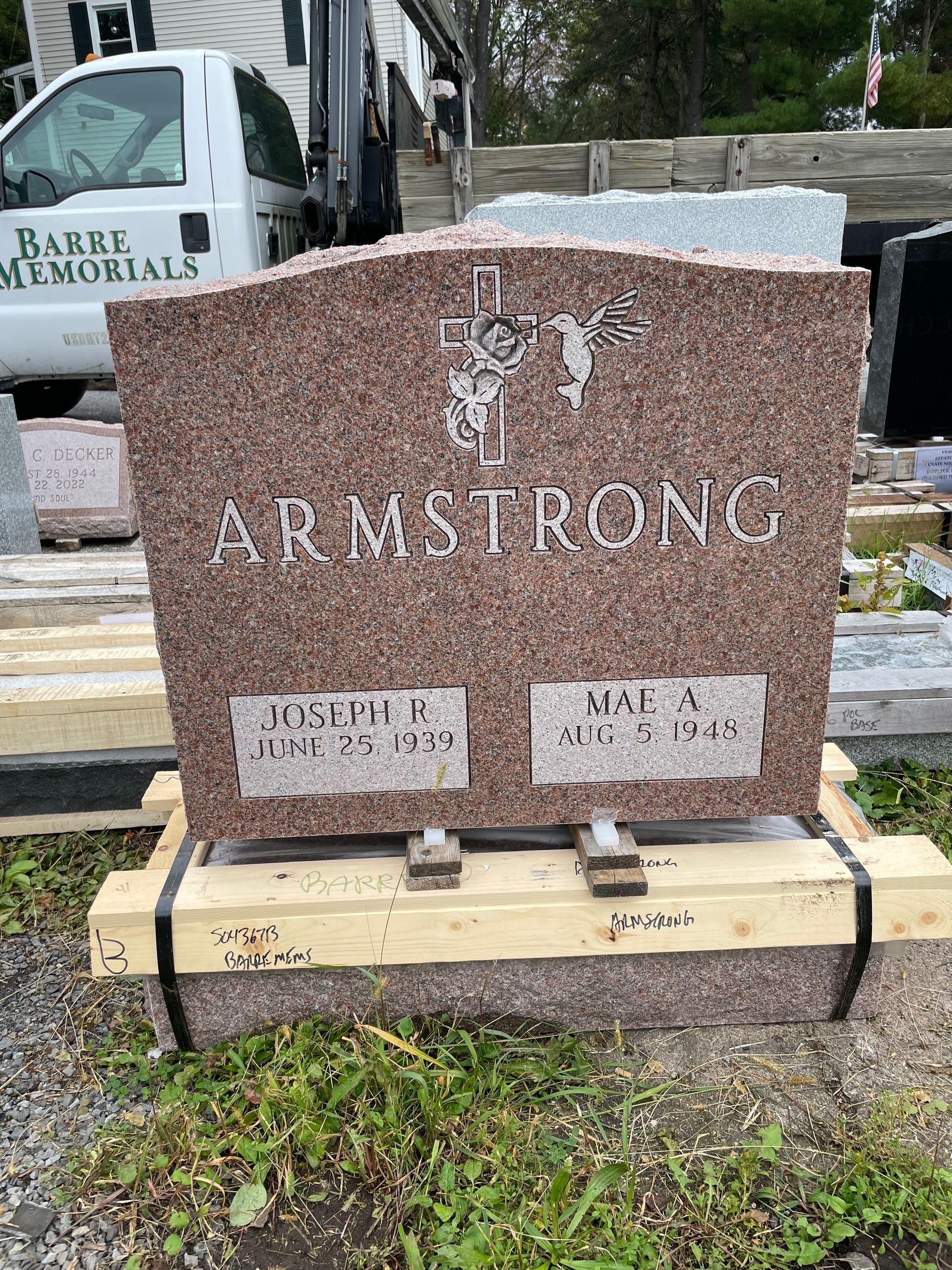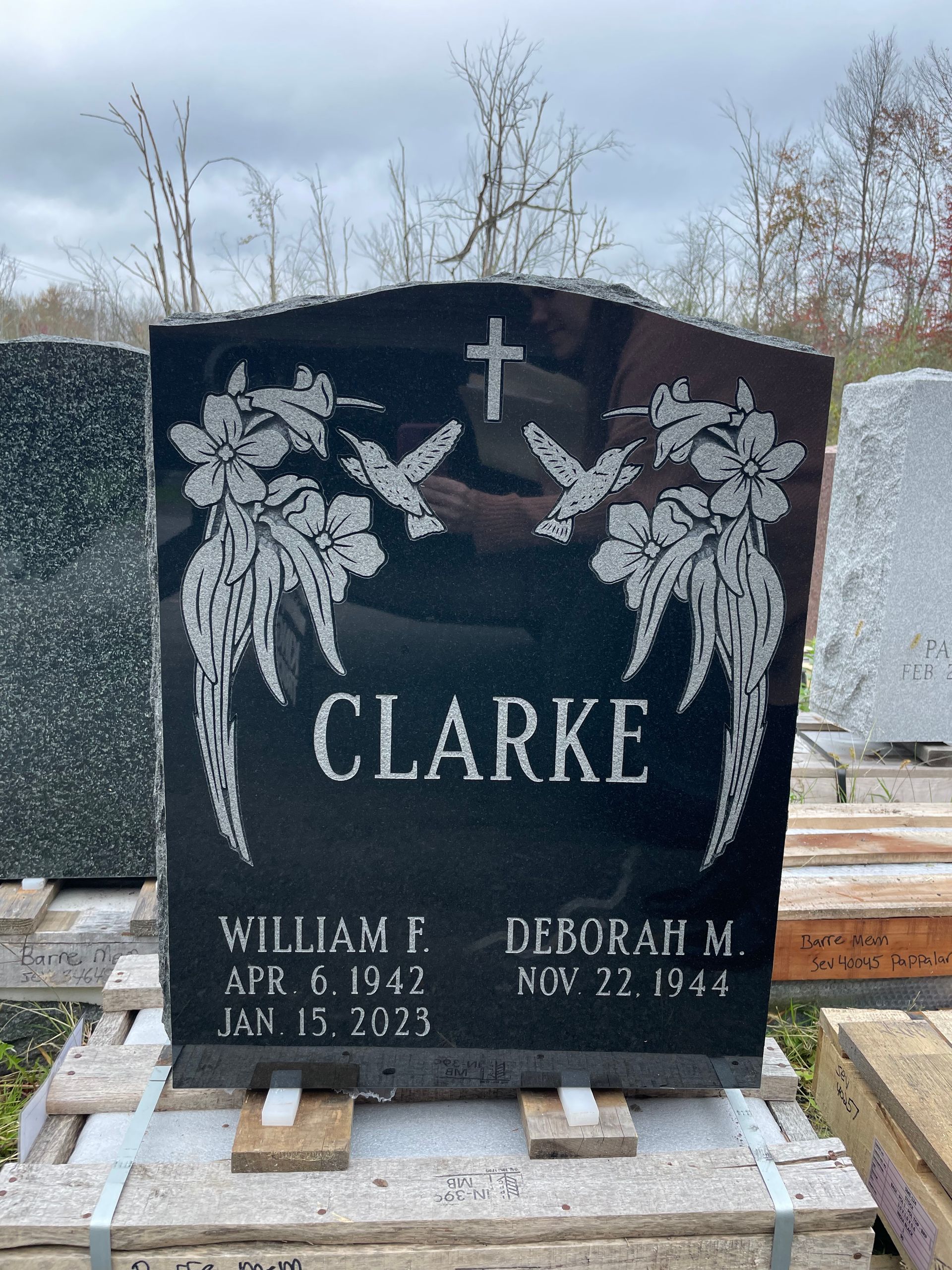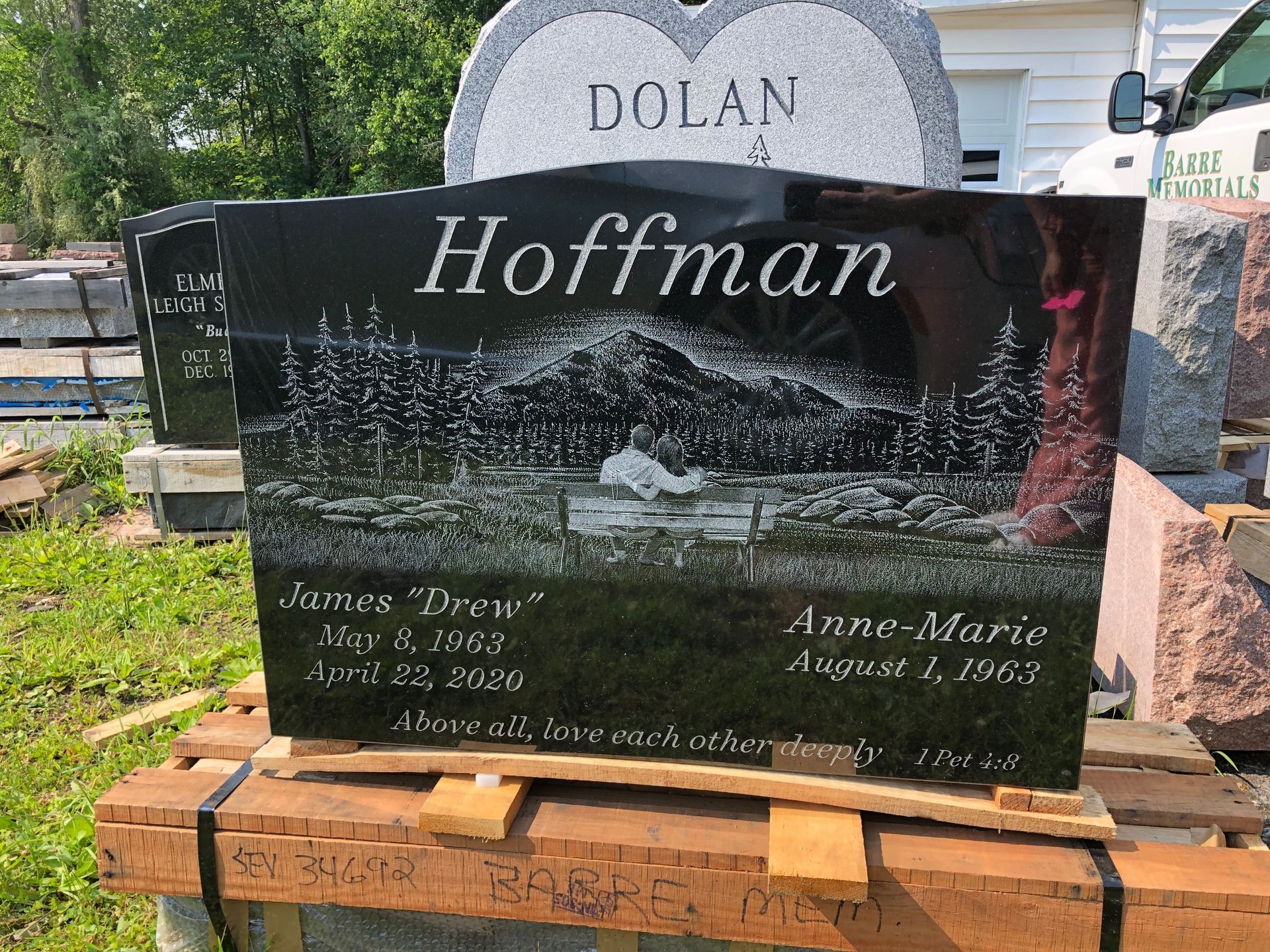 I went right down to see the headstone as soon as I received your telephone message. It is beautiful, the picture came out great, the polish around the border and back is terrific, and the hammer is fabulous... EVERYTHING about it I like so much. Again, thank you so much for all your help. Especially thank you for your patience and perserverance in getting the foundation done and ultimately the stone placed. I will highly recommend Barre Memorials, and you specifically Rachelle, to people. You made a very difficult task, bearable for me. Professional, yet personal. It's a wonderful combination and again, I appreciate it.