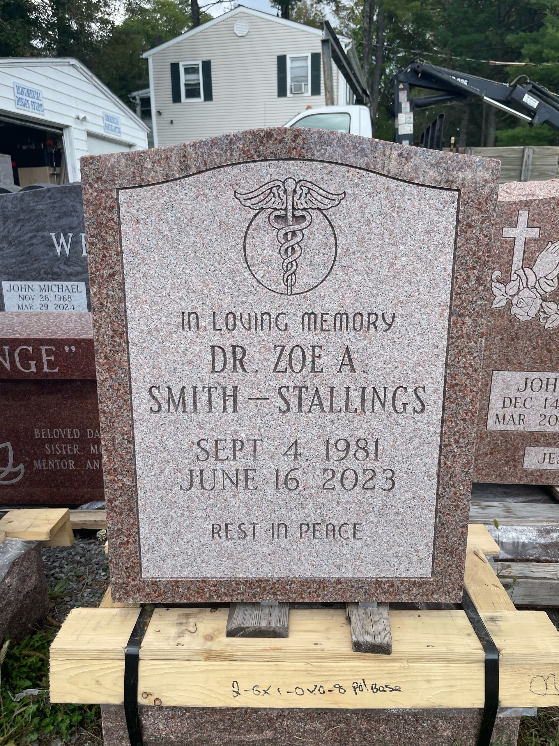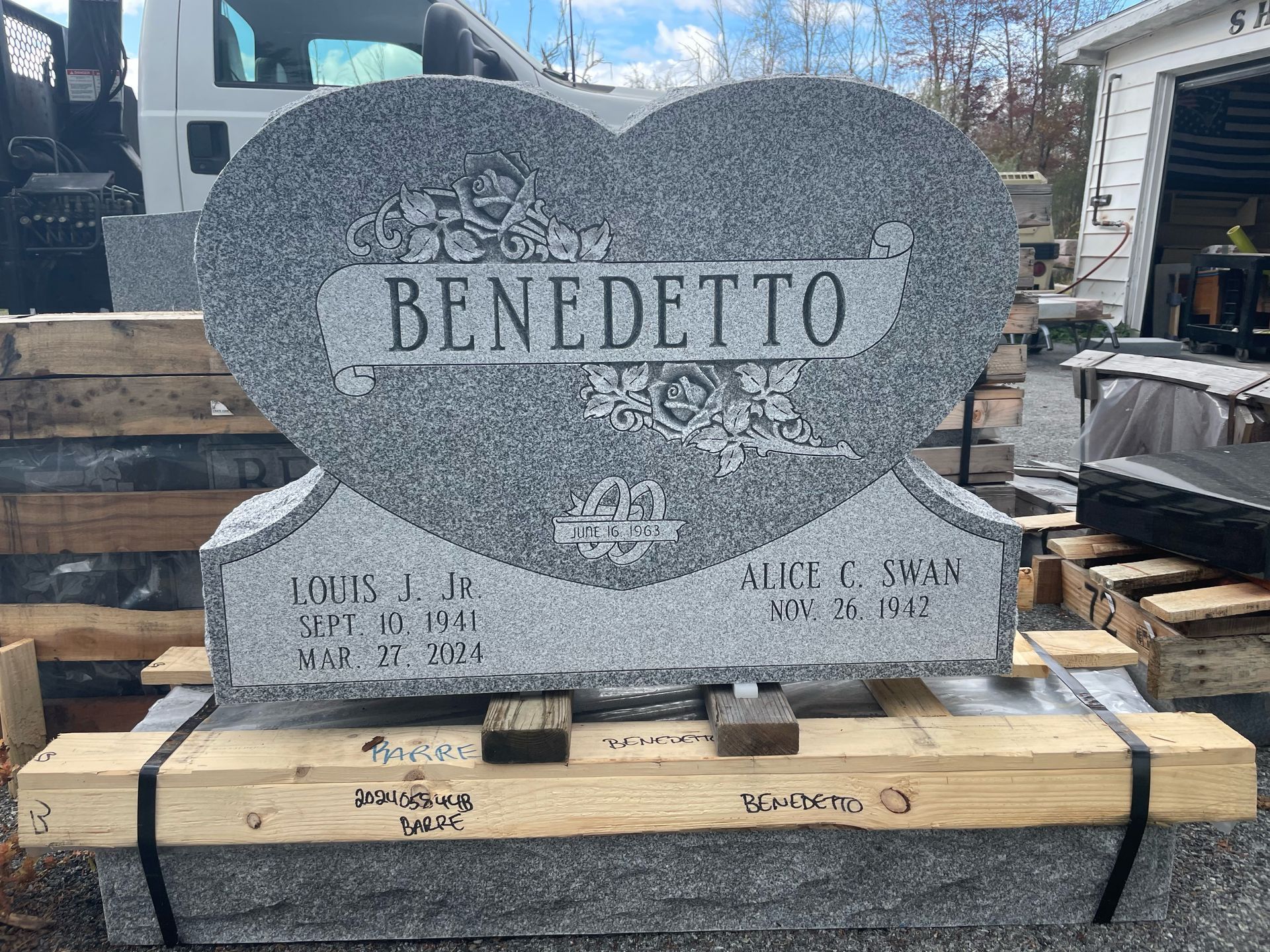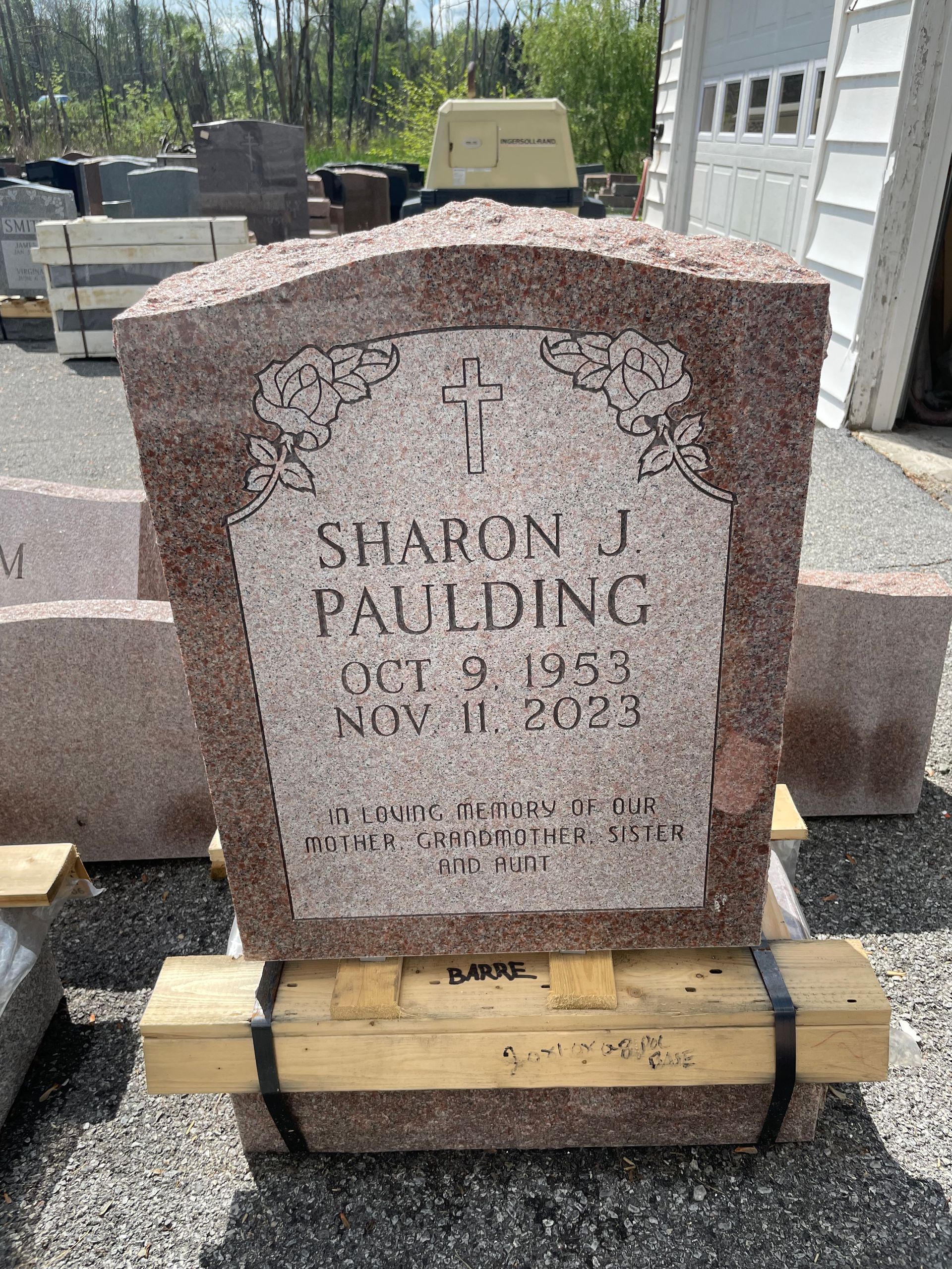 I went right down to see the headstone as soon as I received your telephone message. It is beautiful, the picture came out great, the polish around the border and back is terrific, and the hammer is fabulous... EVERYTHING about it I like so much. Again, thank you so much for all your help. Especially thank you for your patience and perserverance in getting the foundation done and ultimately the stone placed. I will highly recommend Barre Memorials, and you specifically Rachelle, to people. You made a very difficult task, bearable for me. Professional, yet personal. It's a wonderful combination and again, I appreciate it.