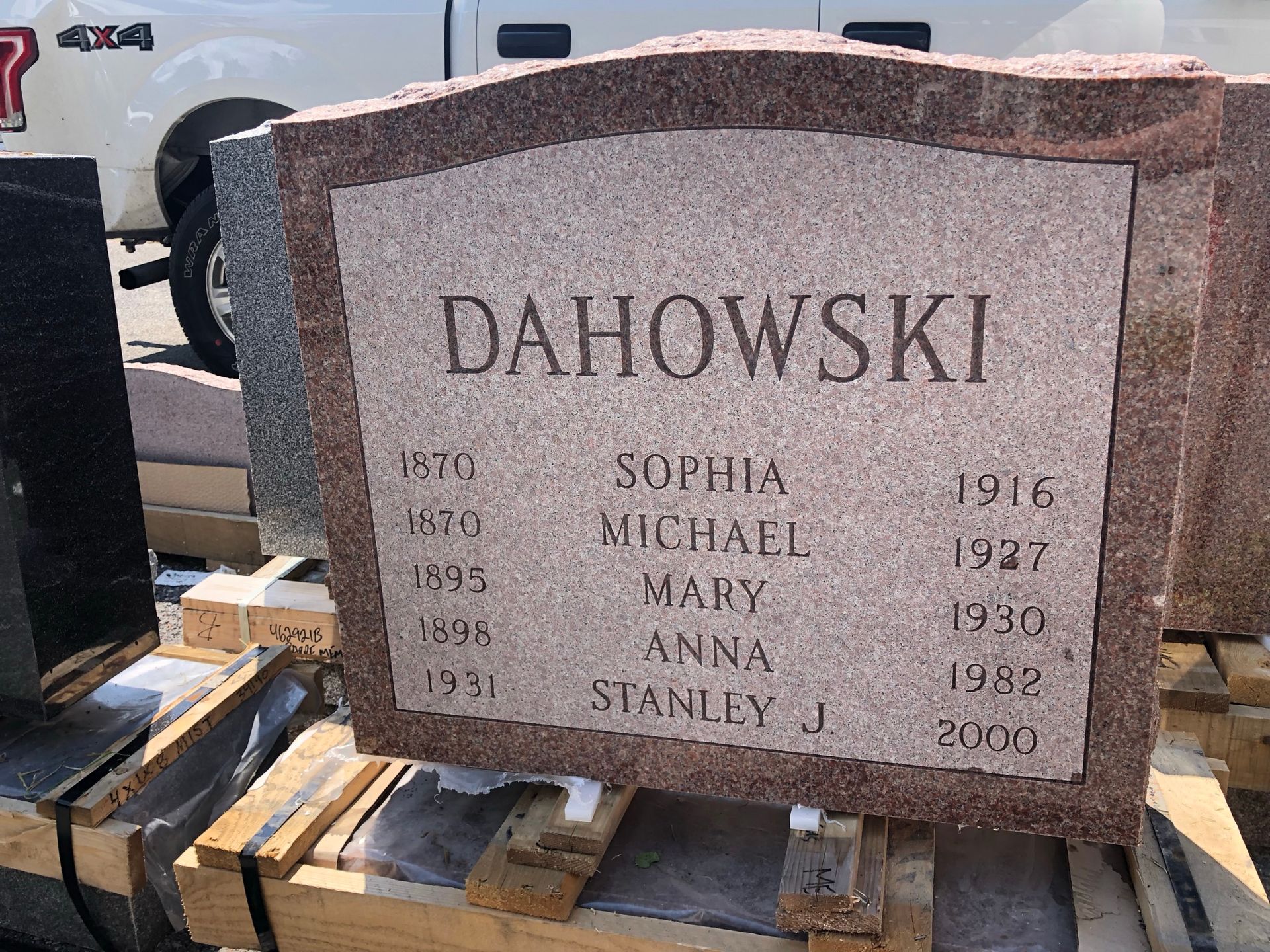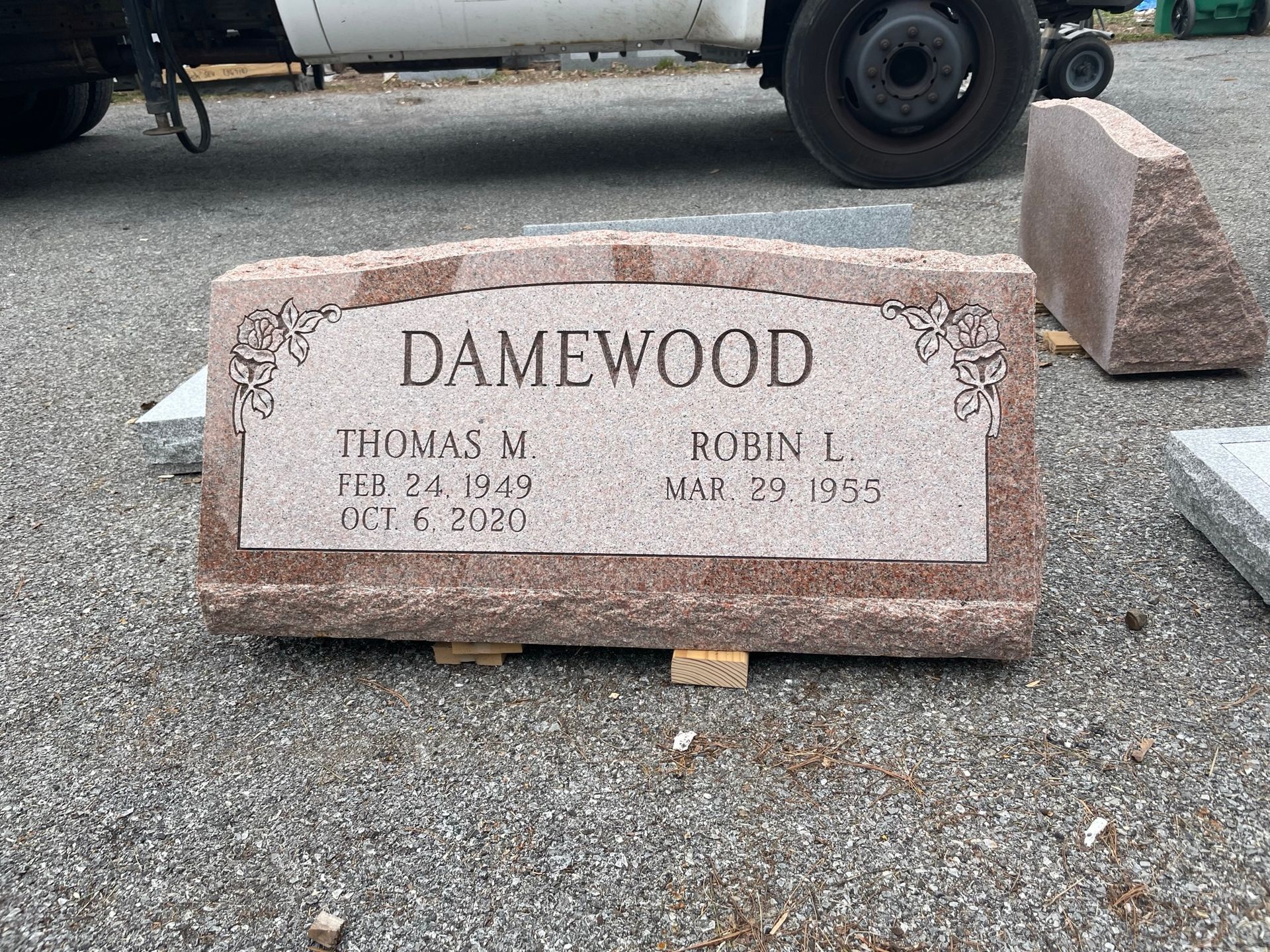 Just a thank you for the beautiful repair you did on our parent's stone. We were there that morning and got your message when we got home that day of it being brought back. It came out beautiful! Again, thank you for your standing behind your product and I would recommend you to anyone!