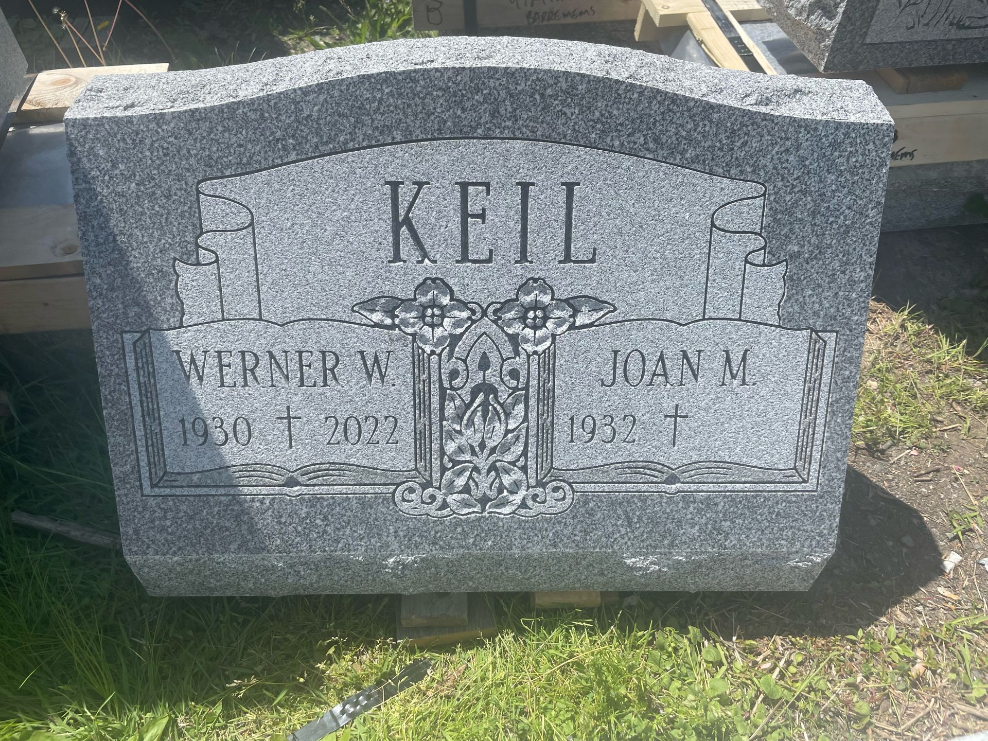 I cannot thank you enough for all the time, work and consideration that was shown in preparing my husband's headstone. He would have been very pleased. Our children, relatives, friends and myself are very impressed with the beautiful art work. Thank you is such a simple phrase but I hope you know there's a world of meaning and appreciation in it.